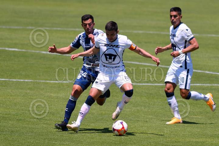 CIUDAD DE MÉXICO, 04ABRIL2021.- Los Pumas vinieron de atrás para conseguir un empate a dos goles con el Pachuca, en juego celebrado en el Estadio Olímpico Universitario, correspondiente a la Jornada 13 del torneo Guard1anes Clausura 2021 de la Liga BBVA MX. Cuando parecía que los Tuzos se quedarían con la victoria, gracias a los tantos conseguidos por Ismael Sosa (con un tiro desde fuera del área al 35’) y Érick Sánchez (al aprovechar un balón rebotado a los 75 minutos), llegó la reacción del cuadro de casa para seguir cerca de los puestos de clasificación a la fase final. Sebastián Saucedo descontó con un remate de cabeza a centro de Carlos Gutiérrez cuando prácticamente se jugaba el minuto 45 de la parte complementaria. Y Juan Ignacio Dinenno cobró de forma acertada un tiro penal en el tercer minuto de la compensación, señalado por un contacto de Efraín Orona con Juan Pablo Vigón. Los universitarios cuentan ahora con 13 unidades, en el lugar 13 de la clasificación general, mientras que los hidalguenses sumaron 14 puntos y se ubican en el décimo sitio. FOTO: CORTESÍA IMAGO 7/CUARTOSCURO.COM