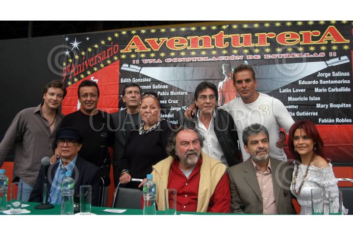 MÉXICO D.F. 09AGOSTO2006.- Los actores, Pedro Armendariz, Juan Ferrara, acompañados de Mari "Boquitas".durante la conferencia de presnsa donde dieron a conocer detalles de las presentaciones en el Auditorio, por el 9o. aniversario de la obra "Aventurera". FOTO:Guillermo Perea/CUARTOSCURO.COM