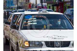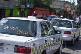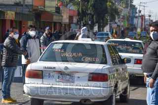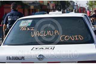 SAN MATEO ATENCO, ESTADO DE MÉXICO, 05ABRIL2021.- Taxis de San Mateo Atenco llevaron a personas de la tercera edad a los centros de vacunación de forma gratuita, rotulados en el frente y atrás de las unidades se identificaban para transportar a las personas a inmunizarse contra COVID-19. FOTO: CRISANTA ESPINOSA AGUILAR /CUARTOSCURO.COM