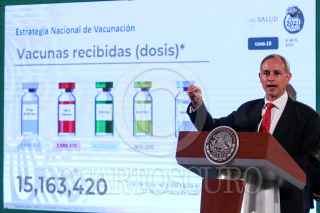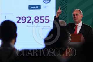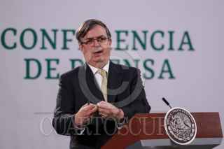 CIUDAD DE MÉXICO, 06ABRIL2021.- Conferencia matutina en Palacio Nacional encabezada por el presidente Andrés Manuel López Obrador; el canciller Marcelo Ebrard; Jorge Alcocer, secretario de Salud; Hugo López-Gatell, subsecretario de Prevención y Promoción a la Salud, y Luis Cresencio Sandoval, secretario de la Defensa Nacional, para dar el informe semanal sobre “El Pulso de la Salud” respecto al desarrollo de la pandemia por Covid-19. FOTO: GALO CAÑAS/CUARTOSCURO.COM