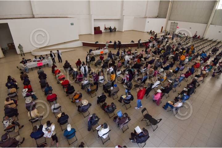 ALMOLOYA DE JUÁREZ, ESTADO DE MÉXICO, 06ABRIL2021.- Segundo día de vacunación en el auditorio “Luis Donaldo Colosio” en la cabecera municipal de Almoloya de Juárez, en donde se aplicó la vacuna de Astra Zeneca contra COVID-19, personal de salud mostró las jeringas que contenían la vacuna antes de ser aplicada; el lugar era sanitizado cada que salía un grupo de personas de la tercera edad al concluir su vacunación. En este municipio fueron recibidas 12500 dosis que fueron repartidas en tres sedes y recibieron a personas de otros municipios. FOTO: CRISANTA ESPINOSA AGUILAR /CUARTOSCURO.COM