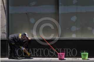 CIUDAD DE MÉXICO, 06ABRIL2021.- Una trabajadora de limpieza trabaja en las inmediaciones de avenida Juárez. El gobierno federal a dado tres meses para que las empresas eliminen el outsourcing. FOTO: MOISÉS PABLO/CUARTOSCURO.COM