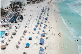 CANCÚN, QUINTANA ROO, 06ABRIL2021. El Club de Playa Mandala ha colocado una valla que impide el tránsito de turistas por una parte de la playa concesionada “Gaviota Azul”, a pesar de tratarse playa publica. Asimismo, ha inicia la construcción de una cerca para evitar juntarse con visitantes y donde han invadido con camastros. El hecho se registra a pesar de las reformas a Ley General de Bienes Nacionales, publicada apenas en octubre pasado, la concesión de usufructo de la playa, no le da derecho a las empresas a prohibir, de alguna forma, el libre tránsito por las playas. FOTO: ELIZABETH RUIZ/CUARTOSCURO COM
