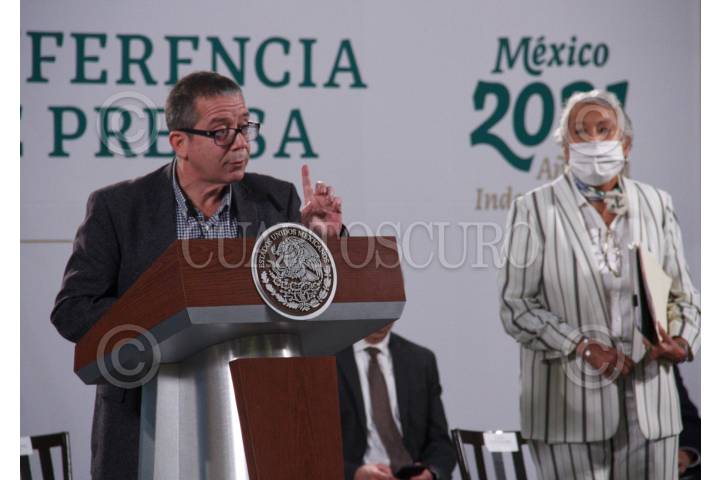 CIUDAD DE MÉXICO, 07ABRIL2021.- Andrés Manuel López Obrador, presidente de México acompañado de Conferencia matutina Olga Sánchez Cordero, secretaria de Gobernación; Jorge Alcocer Varela, secretario de Salud; Luis Cresencio Sandoval González, secretario de la Defensa Nacional; Hugo Miguel Malo Serrano, Organización Mundial de la Salud; José Ignacio Santos Preciado, subsecretario del Consejo de salubridad General; Hugo López Gatell Ramírez, subsecretario de Prevención y Promoción de la Salud; Zoé Robledo Aburto, director General del IMSS; Luis Antonio Ramírez Pineda, director general del ISSSTE y Rodolfo Lehmann Mendoza director de los Servicios de Salud de PEMEX, durante conferencia matutina dedicada al día de la Salud. FOTO: ANDREA MURCIA /CUARTOSCURO.COM FOTO: ANDREA MURCIA /CUARTOSCURO.COM