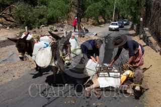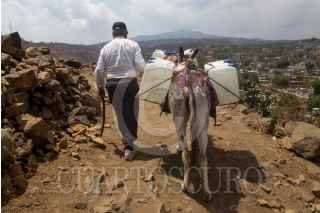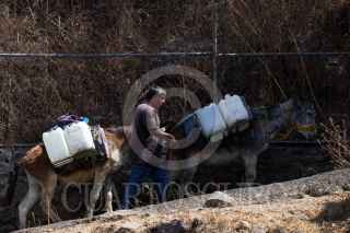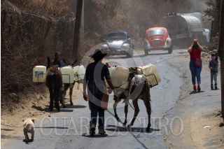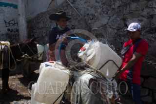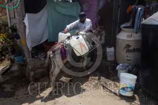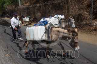 CIUDAD DE MÉXICO, 07ABRIL2021.- Repartidores de agua acarrean el vital líquido en bidones que cargan burros en la colonia Tecacalanco, en Santa Cruz Acalpixca, uno de los 14 pueblos originarios de la alcaldía Xochimilco. Cada burro carga cuatro bidones de veinte litros diariamente en cada viaje a los domicilios donde los vecinos aún no cuentan con agua entubada. Desde hace alrededor de 50 años se utilizan burros para entregar agua en los pueblos de San José Obrero, conocido como San José de los Burros y en Santa Cruz Alcapixca. FOTO: GRACIELA LÓPEZ /CUARTOSCURO.COM
