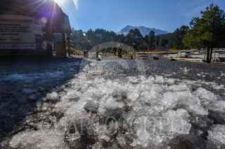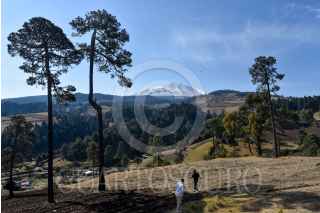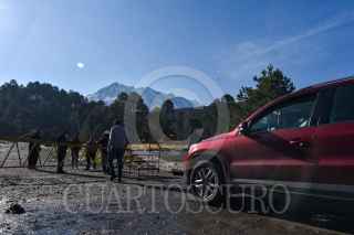 ZINACANTEPEC, ESTADO DE MÉXICO, 07ABRIL2021.- El Volcán Xinantécatl lució la manaña de este miércoles una capa blanca de granizo después de las lluvias del martes y un descenso en la temperatura, algunas personas llegaron al Parque de los Venados para disfrutar de este espectáculo natural pero este continúa cerrado por la contingencia por COVID-19, desde diversos puntos del Valle de Toluca se pudo observar el Nevado de Toluca. FOTO: CRISANTA ESPINOSA AGUILAR /CUARTOSCURO.COM