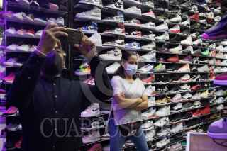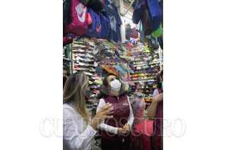 CIUDAD DE MÉXICO. 07ABRIL2021.- La diputada Federal, Dolores Padierna, aspirante a la alcaldía de Cuauhtémoc, realizó una visita de campaña al mercado de tenis del Barrio Bravo de Tepito. FOTO: VICTORIA VALTIERRA/CUARTOSCURO.COM
