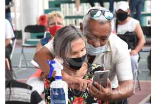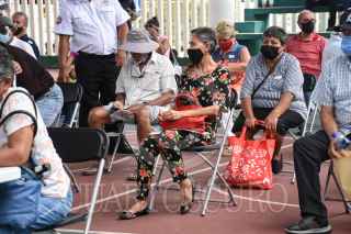 CANCUN,QUINTANA ROO, 07ABRIL2021.- La actriz Florinda Meza al gimnasio Jacinto Canek de este destino turístico para recibir su vacuna contra la Covid-19. Algunos asistentes al reconocerla se tomaron fotografías con ella. FOTO:ELIZABETH RUIZ/CUARTOSCURO.COM