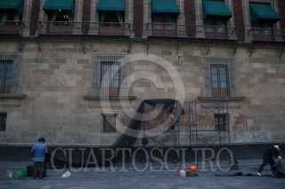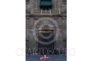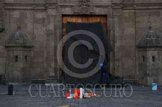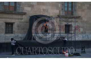 CIUDAD DE MÉXICO, 07ABRIL2021.- Personal del Instituto Nacional de Historia (INAH) se encuentra borrando las diversas pintas hechas con pintura en aerosol en la Puerta Mariana y muros del Palacio Nacional. Estas intervenciones son producto de las diversas movilizaciones se han suscitado a lo largo de estos últimos dos años de gobierno. FOTO: ANDREA MURCIA/CUARTOSCURO.COM