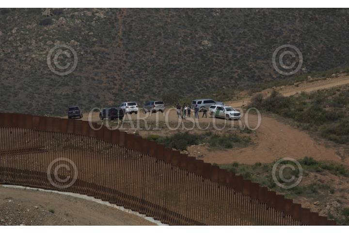 TIJUANA, BAJA CALIFORNIA, 07ABRIL2021.- Un grupo de 14 migrantes de origen brasileño integrando por hombres, mujeres y niños, fueron detenidos por autoridades de migración de México antes de cruzar ilegalmente hacia Estados Unidos por la colonia Nido de las Aguilas. Agentes de migración estadounidense observaron a distancia el aseguramiento y traslado de los migrantes sudamericanos a las oficinas para ver su situación migratoria en México. Una parte de la franja migratoria ubicado en el Este de la ciudad fronteriza entre Tijuana y San Diego se encuentra libre, sin muro, después de que el presidente estadounidense Joe Biden firmara un decreto que detuvo su construcción. FOTO: OMAR MARTÍNEZ /CUARTOSCURO.COM