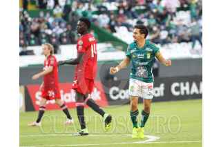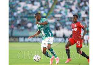 CIUDAD DE MÉXICO, 07ABRIL2021.- El León empató 1-1 con el Toronto FC, en los octavos de final de la Concachampions, partido realizado en el Estadio León. Por los locales anotó Fernando Navarro Morán, mientras que por los estadounidenses marcó Andrés Mosquera Guardia. FOTO: ESTEBAN HERNÁNDEZ/CUARTOSCURO.COM