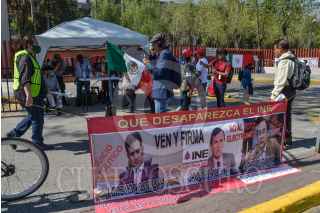 CIUDAD DE MÉXICO, 08ABRIL2021.- Integrantes de diversas organizaciones sociales se manifestaron al exterior de la Cámara de Diputados para exigir se lleve a cabo un juicio político a Lorenzo Córdoba presidente del Instituto Nacional Electoral (INE). FOTO: MARIO JASSO/CUARTOSCURO.COM