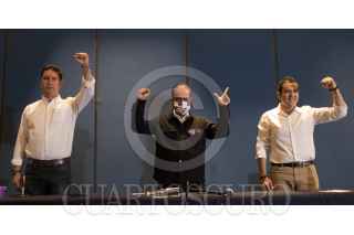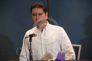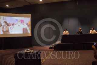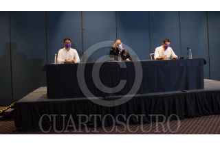 CIUDAD DE MÉXICO. 08ABRIL2021.- Iván Santiago Beltrán, candidato; Hugo Eric Flores, dirigente Nacional y Ulises Plegia Haro, del Partido Encuentro Social de Zacatecas, en conferencia de prensa esta mañana. FOTO: VICTORIA VALTIERRA/CUARTOSCURO.COM