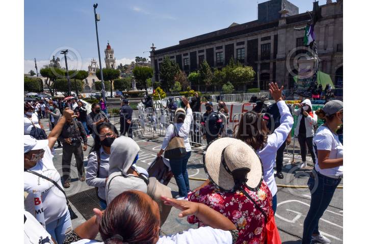 TOLUCA, ESTADO DE MÉXICO, 08ABRIL2021.- Familiares de presos en penales del Estado de México e integrantes de la Organización Presunción de Inocencia y Derechos Humanos se manifestaron en la Plaza de los Mártires en donde entregaron solicitudes de amnistía; algunos tuvieron un encuentro de palabras con feministas radicales que mantienen un plantón de la Cámara de Diputados. FOTO: CRISANTA ESPINOSA AGUILAR /CUARTOSCURO.COM