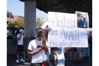 CIUDAD DE MÉXICO, 08ABRIL2021.- Familiares y amigos de Arath -un jovencito de 14 años que fue asesinado por tres sujetos tras ser asaltado para robarle su celular, el pasado viernes- bloquearon avenida Oceanía, a la altura del metro Romero Rubio. Los inconformes exigieron justicia ya que señalan que la policía soltó uno de los responsables con el argumento de que era menor edad, esto a pesar de que había confesado haber participado en el asalto. FOTO: ARMANDO MONROY /CUARTOSCURO.COM