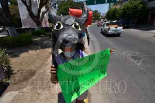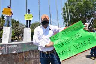 CHILPANCINGO, GUERRERO, 08ABRIL2021.- Simpatizantes de Morena se manifestaron para exigir al Tribunal Electoral del Poder Judicial que resuelva a su favor la impugnación que interpuso el candidato a gobernador por Guerrero Félix Salgado Macedonio, a quién el INE le retiró el registro por no haber reportado sus gastos de precampaña. Los morenistas se instalaron en la glorieta de las banderas, justo en lo que se conoce como el antimonumento a los 43, allí mostraron cartulinas en las que repudiaron al INE y demandaron que se regrese la candidatura a Félix Salgado. FOTO: DASSAÉV TÉLLEZ /CUARTOSCURO.COM