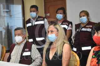 CHILPANCINGO, GUERRERO, 08ABRIL2021.- Hombres armados balearon durante la madrugada de este jueves el portón de la vivienda de la aspirante de Morena a la presidencia municipal de Eduardo Neri, Guadalupe Deloya Bello. Mediante un comunicado de prensa, el secretario general de Morena en Guerrero, Marcial Rodríguez Saldaña informó que la aspirante no se encontraba en su domicilio cuando ocurrieron los hechos, puesto que participaba en una reunión en las oficinas estatales del partido en Chilpancingo, precísamente sobre su registro para ser candidata. Cabe señalar que los hechos se suscitaron mientras decenas de adultos mayores hacian fila la para vacunarse contra el Covid-19. Para la tarde noche de este jueves, Deloya Bello ofreció una conferencia de prensa en Chilpancingo, acompañada del líder estatal del partido, Marcial Rodríguez Saldaña, en la que informó que pese al atentado permanecerá en la contienda. FOTO: DASSAEV TÉLLEZ ADAME/CUARTOSCURO.COM