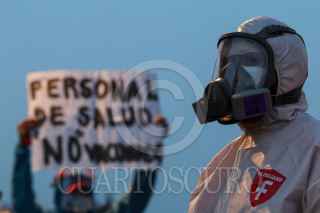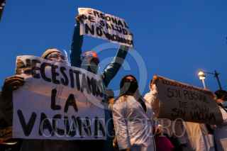 CIUDAD DE MÉXICO, 09ABRIL2021.- Personal médico del sector privado se manifestó frente a Palacio Nacional, durante la conferencia mañanera, para exigir que sean vacunados contra la Covid-19. Denuncian que el gobierno los ha dejado de lado para la inmunización. En punto de las 11 horas sostendrán una reunión en la secretaria de Gobernación para que sean atendidas sus demandas. FOTO: GALO CAÑAS/CUARTOSCURO.COM