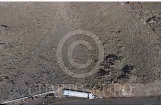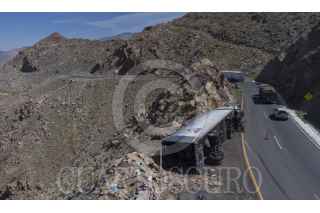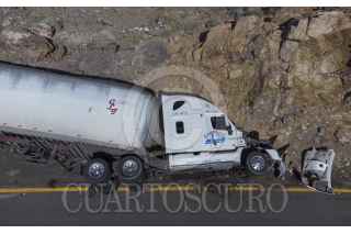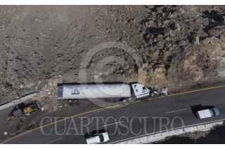 TECATE, BAJA CALIFORNIA, 09ABRIL2021.- Un tractocamión que transportaba cartón se volcó en la rampa descendente de La Rumorosa. El accidente ocurrió durante la tarde del jueves. No se reportaron personas lesionadas. FOTO: OMAR MARTÍNEZ /CUARTOSCURO.COM