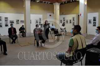 ZACATECAS, ZACATECAS, 09ABRIL2021.- Sergio Mayorga, subdirector de la Fototeca, Jaime Robledo, responsable del Centro de Documentación y Alfonso Vázquez, director del Instituto Zacatecano de Cultura Ramón López Velarde, presidieron la inauguración de la exposición “Ricardo Sánchez Ortega, retratos de estudio en 1945-1946, Fresnillo, Zacatecas”, con motivo del XV aniversario de la Fototeca de Zacatecas "Pedro Valtierra" y como parte del Festival Cultural Zacatecas 2021. Los visitantes a la exposición observaron con sorpresa y curiosidad cómo eran algunos de los habitantes de Fresnillo durante los años 1945-1946, particularmente notaron la moda, los grupos familiares, las costumbres y los personajes que cotidianamente asistían a fotografiarse por gusto, para regalar la foto a amistades, pretendientes, o por necesidad para trámites, entre otros usos, todo ello posible 76 años después de haber sido realizadas, y gracias al registro y conservación que hizo en su estudio Ricardo Sánchez Ortega, cuyo acervo de más de 100,000, imágenes, tomadas entre 1942-1995, fueron donadas por su familia a la Fototeca de Zacatecas Pedro Valtierra. FOTO: CARLOS SEGURA /CUARTOSCURO.COM