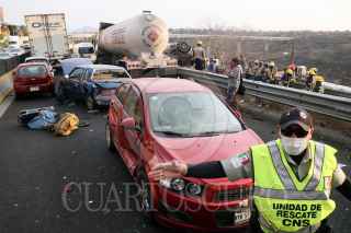 CUERNAVACA, MORELOS, 09ABRIL2021.- Al menos seis personas resultaron heridas, varias de ellas de gravedad, tras una carambola que se registró la tarde de este viernes en la autopista México-Acapulco, a la altura del puente Palmira. Presuntamente el conductor de una pipa perdió el control y embistió al menos a cinco autos, así como a una motocicleta. Al lugar acudieron paramédicos para atender a seis heridos, de primera instancia, en el lugar. Asimismo, personal de Cruz Roja, en coordinación con el ERUM, Bomberos Temixco, Cuernavaca y CAPUFE atendió el área a fin de lograr rescatar a una persona que quedó prensada. Los lesionados fueron trasladados a los hospitales para su atención. FOTO: MARGARITO PÉREZ RETANA /CUARTOSCURO.COM