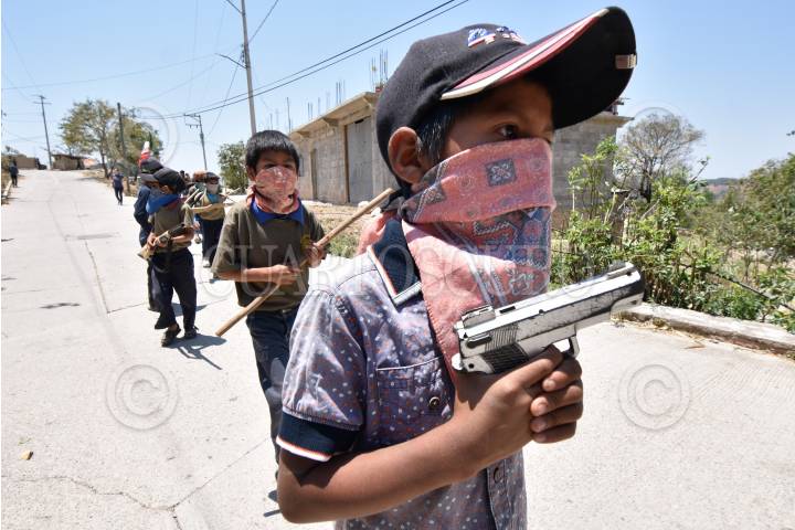 JOSÉ JOAQUÍN DE HERRERA, GUERRERO, 10ABRIL2021.- Luego de 15 meses, la Coordinadora Regional de Autoridades Comunitarias - Policía Comunitaria, Pueblos Fundadores (CRAC-PC PF) presentaron a más niños como policías comunitarios, en la localidad de Ayahualtempa, por lo que ahora suman 34 menores de 15 años. En el mes de febrero del año pasado fueron presentados 17, que están siendo capacitados para defender a sus pueblos del acecho del crimen organizado. El coordinador de este grupo de comunitarios, Bernardino Sánchez Luna declaró que el gobierno del estado ha incumplido con los acuerdos de brindar seguridad, salud y educación a esta zona de la región de la montaña, por lo que han optado por recibir a más niños en sus filas, asegurando que los menores fueron quienes se ofrecieron para ser comunitarios. Este sábado, los menores marcharon por las calles de la localidad de Ayahualtempa e hicieron una demostración de las capacitaciones que han recibido, haciendo un llamado a las autoridades del ámbito federal y estatal para atender sus peticiones, mismas que ya habían sido pactadas hace 15 meses. Los ‘niños comunitarios’, como se les ha conocido a nivel internacional, van desde los siete hasta los 14 años de edad, reciben adiestramiento táctico tipo militar para disparar y saber posicionarse con las armas, pero solamente los que tienen más de 12 años usan armas de verdad, mientras que los más pequeños usan armas de madera o palos que simulan ser Ak-47 (cuernos de chivo) o AR-15. Sánchez Luna explicó que los menores también hacen recorridos como si fueran policías comunitarios adultos, además de que el grupo ya ha aumentado en número y en próximos días serán más de 40, debido al interés de otros infantes por formar parte de la CRAC para defender sus pueblos. “En Ayahualtempa no ha habido nada de apoyo…Hacemos un llamado al gobierno federal para que apoye a las 9 viudas de esta comunidad, a los 14 huérfanos y a los 34 desplazad