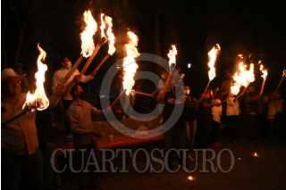 IGUALA, GUERRERO, 11ABRIL2021.- Félix Salgado Macedonio, quien aspira a que el INE le restituya su candidatura a la gubernatura de Guerrero, junto con sus simpatizantes realizaron una velada cultural con antorchas en el centro de Iguala, en donde acamparon para pasar la noche. FOTO: CARLOS ALBERTO CARBAJAL/CUARTOSCURO.COM