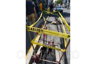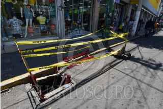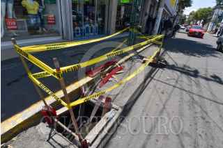 TOLUCA, ESTADO DE MÉXICO, 11ABRIL2021.- La coladera ubicada en la avenida Independencia en la ciudad de Toluca se encuentra abierta y fue colocada cinta amarilla para prevenir a los peatones y evitar algún accidente. FOTO: CRISANTA ESPINOSA AGUILAR /CUARTOSCURO.COM