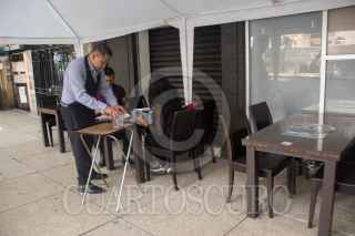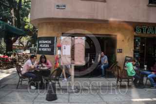 CIUDAD DE MÉXICO, 11ABRIL2021.- Los restaurantes continúan dando parte de su servicio en la vía pública esto como una medida sanitaria dispuesta por el gobierno capitalino para disminuir el riesgo de contagio de Covid-19, en estos espacios. El gobierno capitalino ha señalado que la capital está en semáforo naranja de la alerta epidemiológica por la pandemia. FOTO: VICTORIA VALTIERRA/CUARTOSCURO.COM