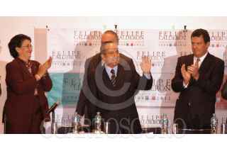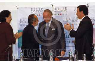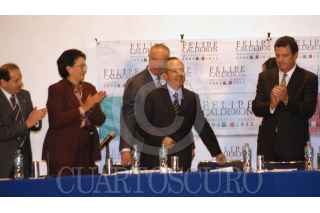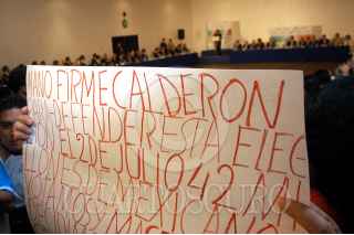 MÉXICO D.F. 10AGOSTO2006.- Un simpatizante de Felipe Calderón candidato del PAN a la presidencia muestra un cartel donde pide mano firme para defender las elecciones del pasado 2 de Julio, esto durante la reunión del candidato con el Consejo Empresarial Turistico. FOTO: Guillermo Perea/CUARTOSCURO.COM