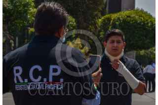 TOLUCA, ESTADO DE MÉXICO, 12ABRIL2021.- Irving Garcia Suárez integrante Movimiento Resistencia Civil (RCP) frente al ayuntamiento de Toluca denunció que fue golpeado por policías municipales de la capital mexiquense, solicitando la intervención de autoridades estatales para que se castigue a los responsables y se pare a los abusos policiacos. FOTO: CRISANTA ESPINOSA AGUILAR /CUARTOSCURO.COM