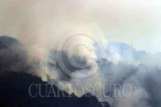 TEPOZTLÁN, MORELOS, 12ABRIL2021.- Un incendio forestal en el paraje Malinalapa de la comunidad de Santo Domingo es combatido por 200 elementos del Mando Unificado, de la comunidad, Protección Ambiental y Protección Civil del municipio. Hasta el momento se tiene un 20 por ciento de control, se estima que 50 hectáreas de bosque de encino-pino han sido afectadas. En esta época de estiaje se han registrado en Morelos 100 incendios forestales que han afectado 2 mil 069 hectáreas de material herbáceo y arbustivo. FOTO: MARGARITO PÉREZ RETANA /CUARTOSCURO.COM
