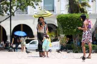 MÉRIDA, YUCATÁN, 12ABRIL2021.- Con una temperatura máxima de 41.9°C y una sensación térmica de 50 grados inician los calores extremos en Yucatán. Las sombrillas, las sodas y aguas frescas son los paliativos de los yucatecos para combatir la ola de calor. FOTO: FRANCISCO BALDERAS/CUARTOSCURO.COM