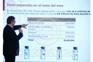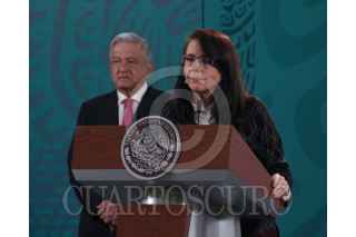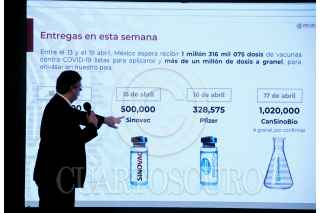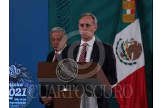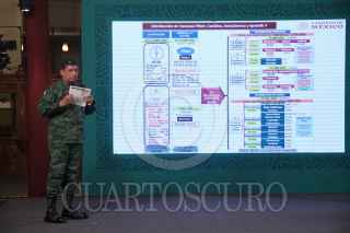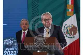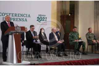 CIUDAD DE MÉXICO, 13ABRIL2021.- Andrés Manuel López Obrador, presidente de México acompañado de Marcelo Ebrard Casaubon, secretario de Relaciones Exteriores; Jorge Alcocer Varela, secretario de Salud; Luis Cresencio Sandoval González, secretario de la Defensa Nacional; Eduardo Redondo Arámbulo, subsecretario de Marina; Hugo López-Gatell Ramírez, subsecretario de Prevención y Promoción de la Salud; Elena Álvarez-Buylla, directora general del Consejo Nacional de Ciencia y Tecnología (CONACYT); Bernardo Lozano Debernard, director general de Laboratorios Avimex y Arturo Reyes Sandoval, director general del Instituto Politécnico Nacional (IPN) durante conferencia Pulso de la Salud que s el leva a cabo en Palacio Nacional, destacando el tema de la Pandemia y vacunación. FOTO: ANDREA MURCIA / CUARTOSCURO.COM