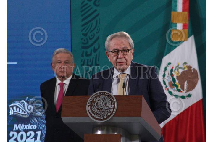 CIUDAD DE MÉXICO, 13ABRIL2021.- Andrés Manuel López Obrador, presidente de México acompañado de Marcelo Ebrard Casaubon, secretario de Relaciones Exteriores; Jorge Alcocer Varela, secretario de Salud; Luis Cresencio Sandoval González, secretario de la Defensa Nacional; Eduardo Redondo Arámbulo, subsecretario de Marina; Hugo López-Gatell Ramírez, subsecretario de Prevención y Promoción de la Salud; Elena Álvarez-Buylla, directora general del Consejo Nacional de Ciencia y Tecnología (CONACYT); Bernardo Lozano Debernard, director general de Laboratorios Avimex y Arturo Reyes Sandoval, director general del Instituto Politécnico Nacional (IPN) durante conferencia Pulso de la Salud que s el leva a cabo en Palacio Nacional, destacando el tema de la Pandemia y vacunación. FOTO: ANDREA MURCIA / CUARTOSCURO.COM