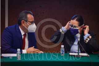 CIUDAD DE MÉXICO, 13ABRIL2021.- Manuel de Jesús Baldenebro, presidente de la Comisión del Trabajo y Previsión Social, y Patricia Terrazas Baca, presidenta de la Comisión de Hacienda y Crédito Público, aprobaron el dictamen en materia de subcontratación laboral la cual se espera se discutirá ante el pleno durante la sesión ordinaria de este martes. FOTO: MARIO JASSO/CUARTOSCURO.COM
