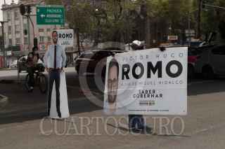 CIUDAD DE MÉXICO, 13ABRIL2021.- En la capital se celebrarán elecciones el próximo mes de junio en donde se elegirán a los 16 alcaldes y se renovarán a los diputados del Congreso de la Ciudad de México, así como a los integrantes de la Cámara de Diputados. En la capital ya se vive la euforia electoral con propaganda electoral por la calles. En la imagen un hombre trabaja promocionando la imagen del alcalde Víctor Hugo Romo, quien busca reelegirse en el cargo. FOTO: MOISÉS PABLO/CUARTOSCURO.COM