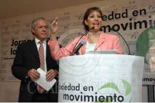 MÉXICO D.F. 10AGOSTO2006.- Laura Elena Castrejón, excandidata al senado, durante la conferencia ante miembros de Sociedad en Movimiento, momentos antes de la protesta pacifica, en la esquina de avenida de los Insurgentes Philadelphia, donde se pidió a los politicos que se trabaje por México y no por los intereses propios, esto por los hechos ocurridos depués de las elecciones del pasado 2 de Julio. FOTO : Guillermo Perea/CUARTOSCURO.COM