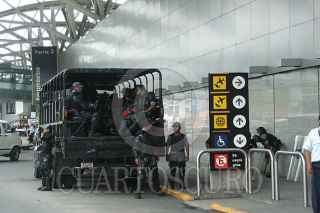 MÉXICO D.F. 10AGOSTO2006.- Refuerzan el aeropuero internacional de la ciudad de Mexico con elementos de la policia federal preventiva (PFP) por las ultimas movilizaciones y tomas a instalaciones federales por parte de simpatizantes de Andres Manuel Lopez Obrador FOTO: Saúl López E./CUARTOSCURO.COM