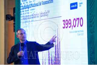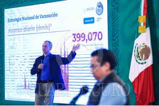 CIUDAD DE MÉXICO, 13ABRIL2021.- Hugo López-Gatell Ramírez, subsecretario de Prevención y Promoción de la Salud y José Luis Alomía Zegarra, director general de Epidemiología, durante el reporte Covid-19 en Palacio Nacional. FOTO: PRESIDENCIA/CUARTOSCURO.COM