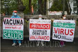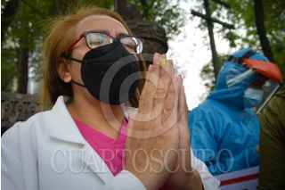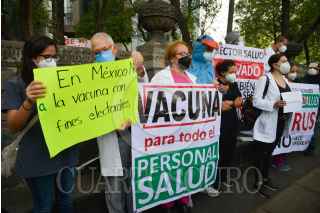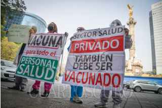 CIUDAD DE MÉXICO, 14ABRIL2021.- Un grupo de médicos del sector salud privado se manifestaron a un costado del Ángel de la Independencia para exigir al gobierno federal ser vacunados contra covid-19. FOTO: MARIO JASSO/CUARTOSCURO.COM