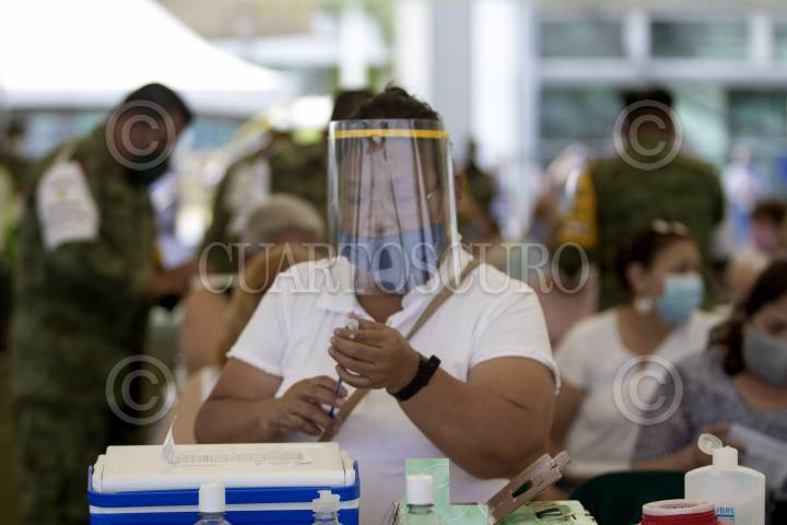 GUADALUPE, NUEVO LEÓN, 14ABRIL2021.- La aplicación de la vacuna Pfizer a adultos mayores en Guadalupe, supera cien mil personas, una de las áreas más pobladas del área metropolitana de Monterrey. FOTO: GABRIELA PÉREZ MONTIEL / CUARTOSCURO.COM