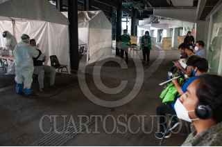 CIUDAD DE MÉXICO,14ABRIL2021.- Decenas de personas continúan asistiendo a los Macroquioscos de la Salud para aplicarse la prueba de detección de Covid-19, esto debido a la recomendación de Claudia Sheinbaum, jefa de gobierno; que insistió en que los vacacionistas de Semana Santa, acudan a hacerse la prueba y descarten un contagio por coronavirus y así evitar propagar la enfermedad en su regreso a la ciudad. FOTO: DANIEL AUGUSTO /CUARTOSCURO.COM