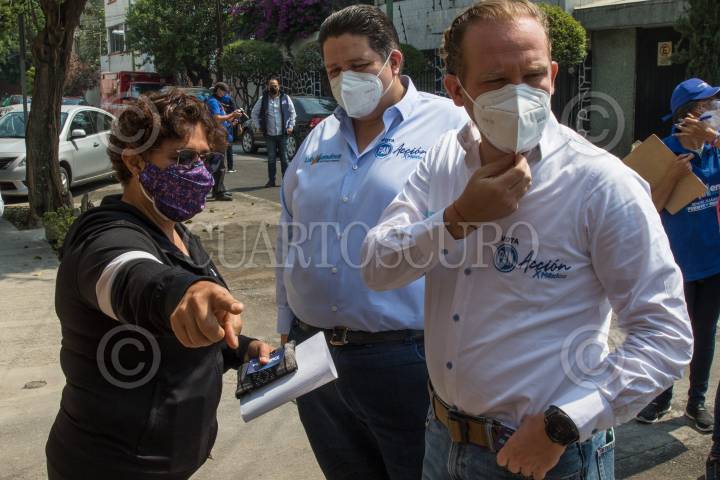 CIUDAD DE MÉXICO, 14ABRIL2021.- Héctor Barrera, candidato a diputado local del PAN; Santiago Taboada, quien busca a reelegirse a la alcaldía de Benito Juárez; y Luis Mendoza, candidato al PAN por una diputación federal, recorrieron calles de la alcaldía con miras a las elecciones de junio. FOTO: MOISÉS PABLO/CUARTOSCURO.COM