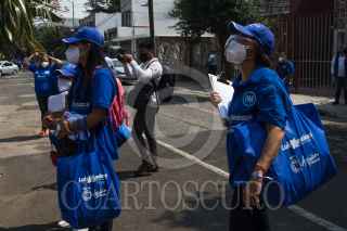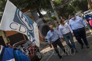 CIUDAD DE MÉXICO, 14ABRIL2021.- Héctor Barrera, candidato a diputado local del PAN; Santiago Taboada, quien busca a reelegirse a la alcaldía de Benito Juárez; y Luis Mendoza, candidato al PAN por una diputación federal, recorrieron calles de la alcaldía con miras a las elecciones de junio. FOTO: MOISÉS PABLO/CUARTOSCURO.COM