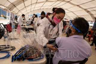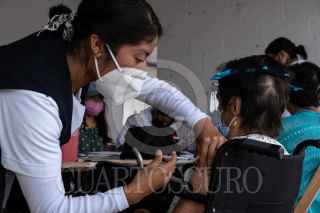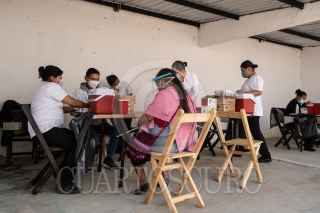 SAN CRISTÓBAL DE LAS CASAS, CHIAPAS, 14ABRIL2021.- Inicio la aplicación de la segunda dosis en los diferentes puntos de vacunación instalados en la ciudad, donde adultos mayores acuden a ponerse la inyección del laboratorio chino SinoVac contra la enfermedad causada por el virus Covid 19. Uno de los puntos con mayor afluencia es el instalado en el DIF municipal. FOTO: ISABEL MATEOS /CUARTOSCURO.COM