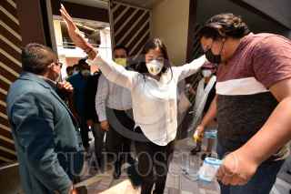 CHILPANCINGO, GUERRERO, 14ABRIL2021.- Sheila Soto Manzanares, candidata de la coalición PRI-PRD a diputada federal por el Distrito 04, interpuso de manera formal una denuncia por el delito de Violencia política ante la Fiscalía Especializada en Delitos Electorales y señaló como responsable a su adversario Pablo Amílcar Sandoval Ballesteros. La candidata demandó que para los 60 días que restan al proceso electoral requerirá de seguridad policiaca en su domicilio y en los sitios donde realice actividades proselitistas. Asimismo, exigió que se notifique a Pablo Amílcar que se le hace responsable de la violencia política que se cometió en su contra y por ello no debe acercarse a la candidata ni realizar actos de intimidación contra ella o su equipo. FOTO: DASSAÉV TÉLLEZ /CUARTOSCURO.COM