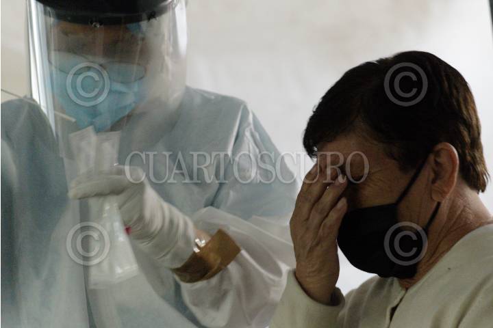 CIUDAD DE MÉXICO, 15ABRIL2021.- Vecinos de la colonia Roma asisten a realizarse la prueba rápida de detección de Covid-19 en el "macro kiosko" instalado en la glorieta del metro Insurgentes. FOTO: MARIO JASSO/CUARTOSCURO.COM