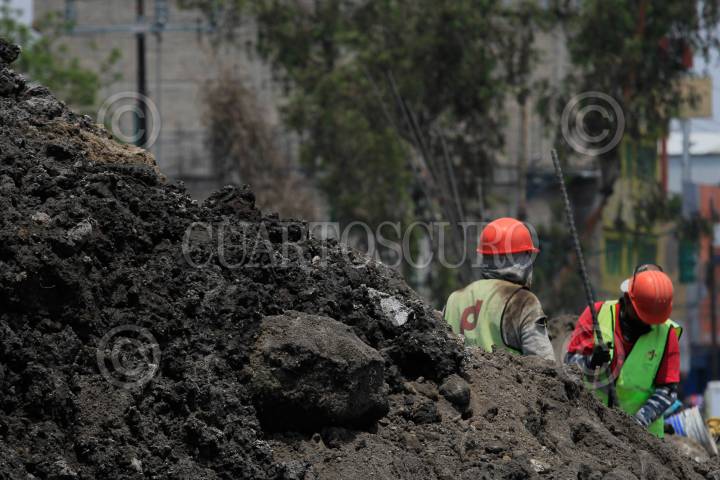 CIUDAD DE MÉXICO, 15ABRIL2021.- Trabajadores de construcción maniobraron las grúas y cavaron pozos para fijar las viguetas del puente peatonal que cruzará por calzada Ermita Iztapalapa. Desde el inicio de la pandemia han perdido más de 10 mil empleos. FOTO: GRACIELA LÓPEZ /CUARTOSCURO.COM