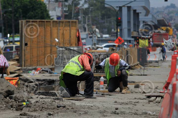 CIUDAD DE MÉXICO, 15ABRIL2021.- Trabajadores de construcción maniobraron las grúas y cavaron pozos para fijar las viguetas del puente peatonal que cruzará por calzada Ermita Iztapalapa. Desde el inicio de la pandemia han perdido más de 10 mil empleos. FOTO: GRACIELA LÓPEZ /CUARTOSCURO.COM